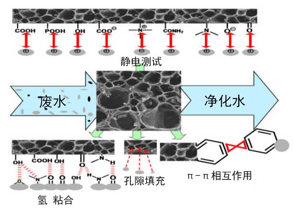 圖2:污染物與活性炭相互作用的推測機(jī)制。