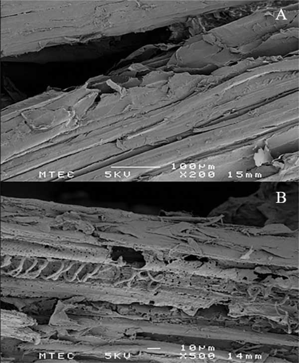 如圖3所示,將通過分離獲得的固相微結構通過SEM與天然RH進行了比較。活性炭原材料提供了正常且完整的表面,表明植物材料的高度有序的完整結構(圖3A)。分離的固體殘余物的生物質的表面結構顯示出表面和內部結構的破壞,并具有空腔和裂紋。該觀察結果表明半纖維素的去除和表面木質素的改變。對于BET表面積測量,分析了原始和預處理的生物量樣品。