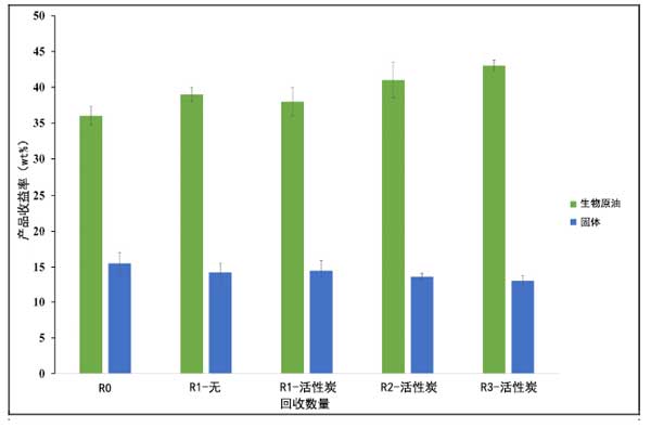 通過活性炭回收處理水相的生物原油產量和質量