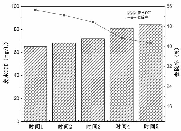 為了評估活性炭的可重復使用性,對活性炭進行了吸附-解吸實驗。經過四個吸附-解吸循環后,活性炭吸附對焦化廢水中COD的吸附效率僅降低了約10%(圖3),表明活性炭具有良好的可重復使用性。此外,使用NaOH作為再生劑的方法具有成本效益高的優點。總之,這些表明本研究中生產的活性炭在實際廢水處理中具有巨大的應用潛力。