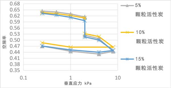 圖2:用(5、10、15%)粒狀活性炭處理的土壤的塌陷測試結果。