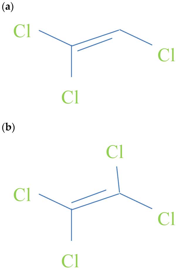 圖1:(a)三氯乙烯和(b)全氯乙烯的結構。