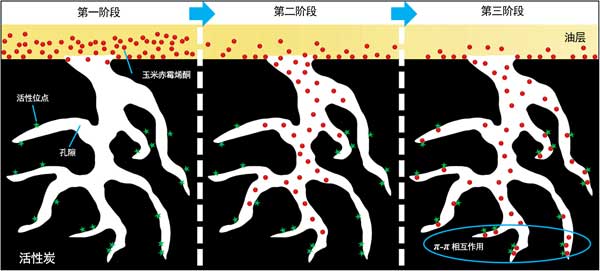 圖3:玉米油中玉米赤霉烯酮在活性炭上的吸附機理。