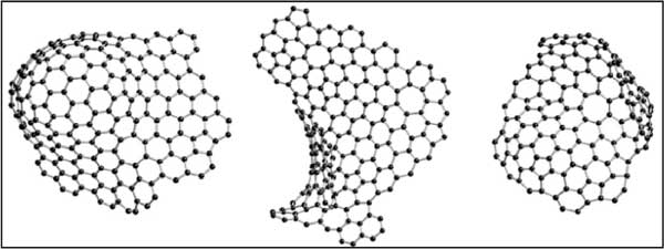 活性炭的具體原子構型尚不清楚,盡管它在水和空氣凈化方面具有重要的商業意義。通過熱解法制備的碳的構型。她指出,這些碳可以分為兩個不同的組,即石墨化和非石墨化。活性炭衍生出的碳是非石墨化的,這意味著即使在非常高的溫度(≥3000℃)下,它也可以轉變為結晶石墨。中子衍射研究表明,非石墨化碳具有類似于富勒烯的骨架,如圖1所示。這種配置將闡明碳的微孔結構及其其他特性。從x射線和中子衍射研究中獲得的衍射數據已根據由非六角環組成的結構進行了闡明,但無法提供任何明確的證據表明原子以五角環或六角環的形式鍵合。