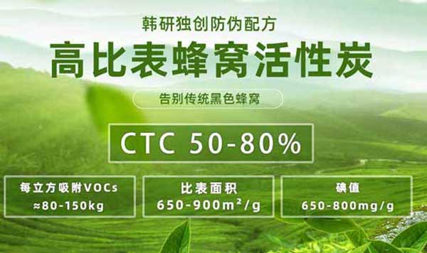 比表面積是指單位質量活性炭所具有的表面積。它是衡量活性炭吸附性能的重要指標之一。比表面積越大,活性炭的吸附能力越強,因為它能夠提供更多的表面積來吸附有害氣體或異味分子。一般來說,韓研的活性炭的比表面積可以達到900㎡/g以上,而普通活性炭的比表面積可能在100~600㎡/g之間。此外,除了比表面積之外,還需要關注其他參數指標如孔徑分布、孔容率等等。這些參數也會影響活性炭的吸附效果。只有選擇了適合自己需求的活性炭才能更好地發揮其吸附作用。因此,在選擇氣體處理活性炭時需要綜合考慮多個因素,如CTC值、比表面積、機械強度等等。只有選擇了適合自己需求的活性炭才能更好地發揮其吸附作用。