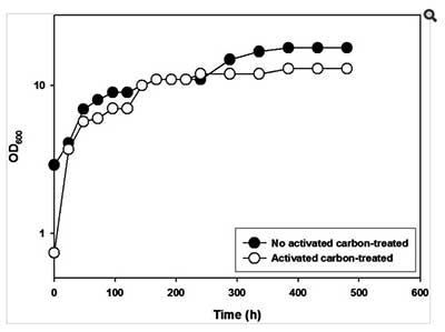 據報道,酸水解產物中的呋喃衍生物(糠醛和5-羥甲基糠醛)和酚類化合物是有毒的并且可以抑制生物乙醇生產,在酸水解產物中發現約0.6-3.0g / l的水平。以前的報告回顧了酸性水解產物的治理。活性炭處理導致呋喃衍生物減少92%,5-羥甲基糠醛減少68%,酚類化合物總量減少約1.25-0.5克/ 升。通過活性炭處理從水解產物中去除有毒物質是非常可靠的。
