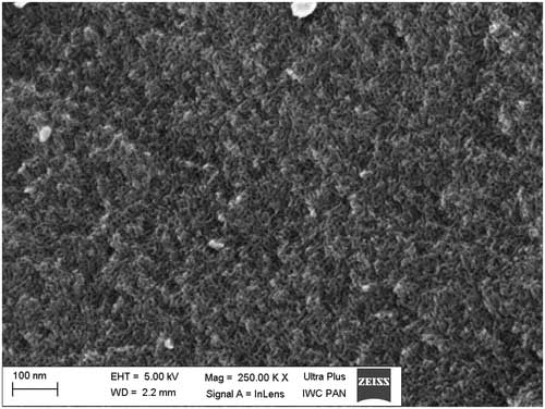 采用檸檬酸應(yīng)用合成方法,通過軟模板法獲得活性炭 。在實驗的低溫(-196℃)氮吸附-解吸等溫線的基礎(chǔ)上確定了表征所研究活性炭的介孔結(jié)構(gòu)的基本標(biāo)準(zhǔn)參數(shù)。對于獲得的活性炭圖像,使用掃描電子顯微鏡(SEM),發(fā)現(xiàn)活性炭材料具有有序的,均勻的多孔結(jié)構(gòu),中孔尺寸約6nm(圖1)。