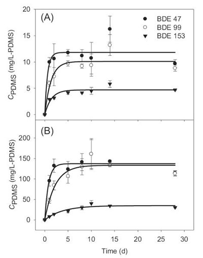 圖1:活性炭在混合條件下沉積物中PDMS纖維的吸收動力學。