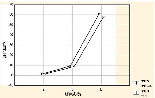 圖1.活性炭對柴油色澤的影響亮度。