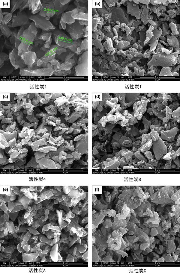 為了研究活性炭結(jié)構(gòu)對氣體混合物的分離性能的影響,七種活性炭,即活性炭1、2、3、4和活性炭A、B、C。評估了SEM圖像及其顆粒分布示于圖2和3中。對比了活性炭的比表面積,微孔體積,孔徑,中值粒徑和骨架密度等。在這些活性炭中,1234衍生自相同類型的活性炭,并具有相同的比表面積,微孔體積,孔徑和骨架密度,但具有不同的粒徑。這類活性炭的中值粒徑分別為1.14、1.41、2.07和6.18μm。在活性炭中,粒徑?jīng)Q定了微孔的利用率,孔徑控制了氣體分子進(jìn)入活性炭孔隙的可能性,比表面積和孔隙體積決定了存儲容量。這種孔徑和粒徑比較適合分離氣體混合物,但是,對于孔體積或比表面積,CO 2吸收越大越好。下面我們選擇兩種氣體混合物來評估活性炭結(jié)構(gòu)對分離性能的影響,即兩種碳?xì)浔壤煌幕旌蠚怏w。將這兩種進(jìn)料氣體混合物與七種活性炭進(jìn)行分離實驗。實驗條件溫度和初始壓力分別為10℃和約2.0MPa。