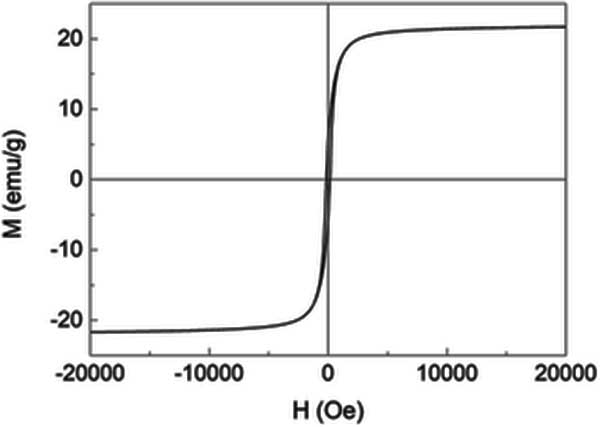 活性炭復合纖維材料在室溫下-20000至20000 Oe范圍內的磁滯回線在圖3顯示,其形狀是典型的S曲線,對應于超順磁行為。包括飽和磁化強度Ms,磁矯頑力HC和剩余磁化強度Mr的磁特性;钚蕴繌秃喜牧系腗s低于塊狀Fe3 O4,這可以通過活性炭載入Fe3O4納米粒子來解釋,這與發現的結果非常一致。