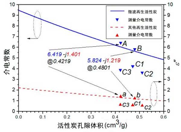 活性炭擁有優秀的吸附能力,是由于各種不同原料與不同工藝而導致活性炭內部的孔結構和大的比表面積,使其成為理想的介質,用于吸附雜質和純化兩種水溶液或者各種廢氣處理。為了回收和保護有限的資源,用過的活性炭需要重新活化。用于再生活性炭微波熱處理比其他處理方法更好,更節能地再生活性炭。特別是在微波加熱工業中,介電常數是一個關鍵參數。本文介紹介電常數與活性炭孔隙體積與吸附性能之間的關系。