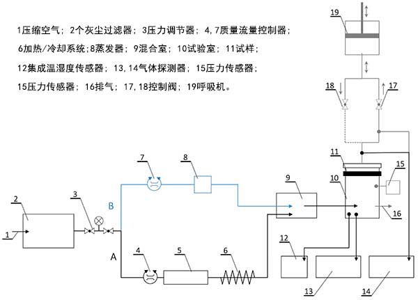 使用環己烷蒸氣作為被吸附物質在圖2中所示的試驗臺上進行突破性實驗。選擇環己烷進行實驗,因為它是測試標準中特性比較全面的。此外,測試設置如圖2所示由于這種情況,優化了使用環己烷作為測試物質。環己烷是這類物質的良好代表,因為它是非極性和非反應性的,因此應主要通過物理吸附與活性炭表面結合。此外,它是在工業過程中大量使用的化合物之一,因此它經常存在于工作環境中。
