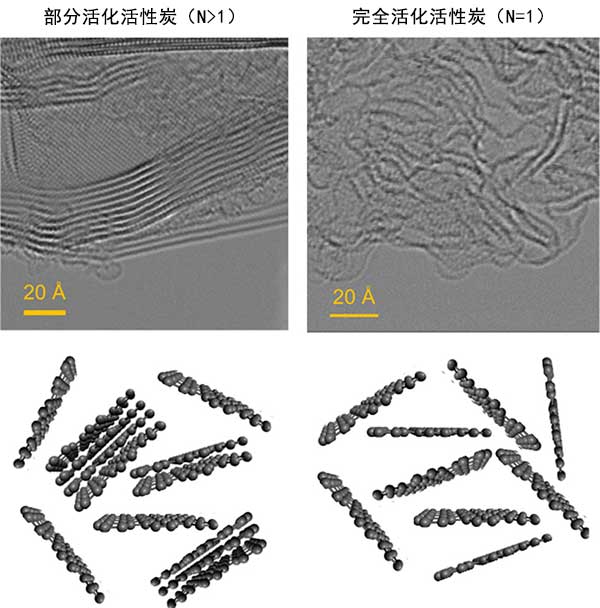 圖1:完全活化的活性炭與部分活化活性炭的STEM顯微照片。