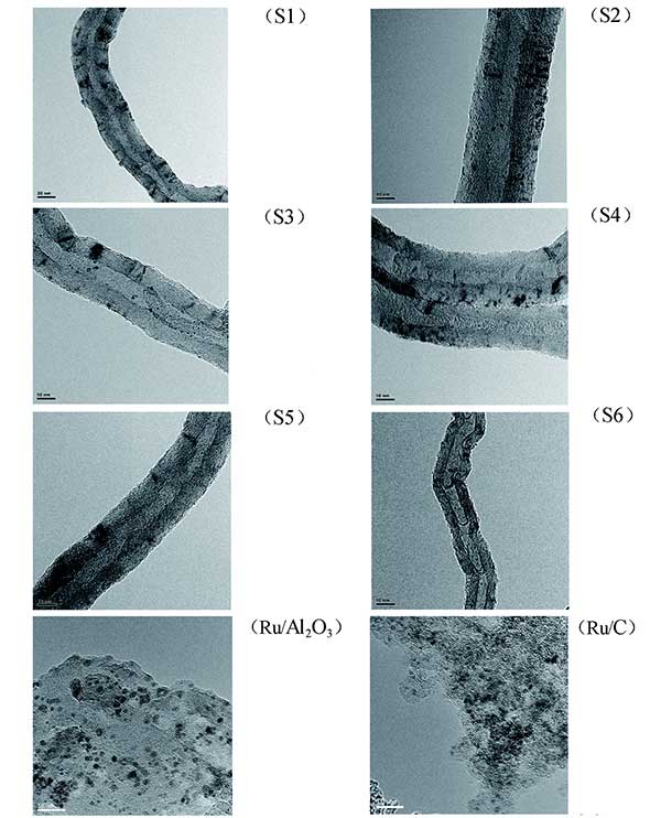 所有載釕活性炭上的釕負載量理論上為5%。通常,將活性炭加入120mL乙二醇中。并將混合物在超聲處理30分鐘以確保活性炭均勻分散。超聲處理后,在連續攪拌下滴加3.0mL RuCl 3水溶液30分鐘。然后是使用NaOH乙二醇溶液將混合物的pH調節至4.0。然后,在連續攪拌24小時后,將溶液放入微波合成反應器中加熱100秒。過濾混合物溶液,用去離子水洗滌直至濾液的pH達到7.0,并在80℃下真空干燥。將樣品研磨成粉末使用。由于活性炭的表面是疏水的,它們傾向于在極性溶劑中聚集。并且由官能團改性的活性炭可以提供足夠的孔隙以使釕納米顆粒均勻地分布在活性炭的表面上。在通過微波加熱的多元醇方法制備活性炭負載的釕納米顆粒。合成過程如圖1所示。