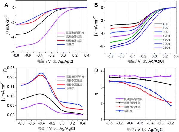 不同氮磷碳摻雜比的活性炭電催化活性