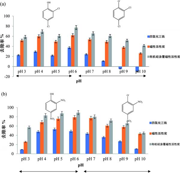 溶液pH對硝基酚類物質的吸附影響