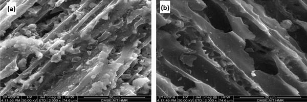 進行了近距離分析以活性炭的基礎性質。它包括水分的百分比,揮發物的百分比,灰分的量以及有機材料中可用的固定碳。再通過SEM檢測強電子束轟擊活性炭樣本時從樣本表面散射的電子來幫助分析詳細的高分辨率表面圖像。與SEM一起,EDS可以通過深入分析其表面來極大地幫助獲取有關特定樣品所含化學物質的信息。在本次測試中,通過使用SEM和EDS,分析了在吸附機理過程中氟吸收前后的活性炭。它有助于理解紋理形態及其在吸附中的意義。數據如圖1所示。結果表明,在氟化物吸附之前,活性炭表面具有大量的粗糙度,隨后在氟化物吸收中會降低,并使表面光滑并降低了孔隙率。
